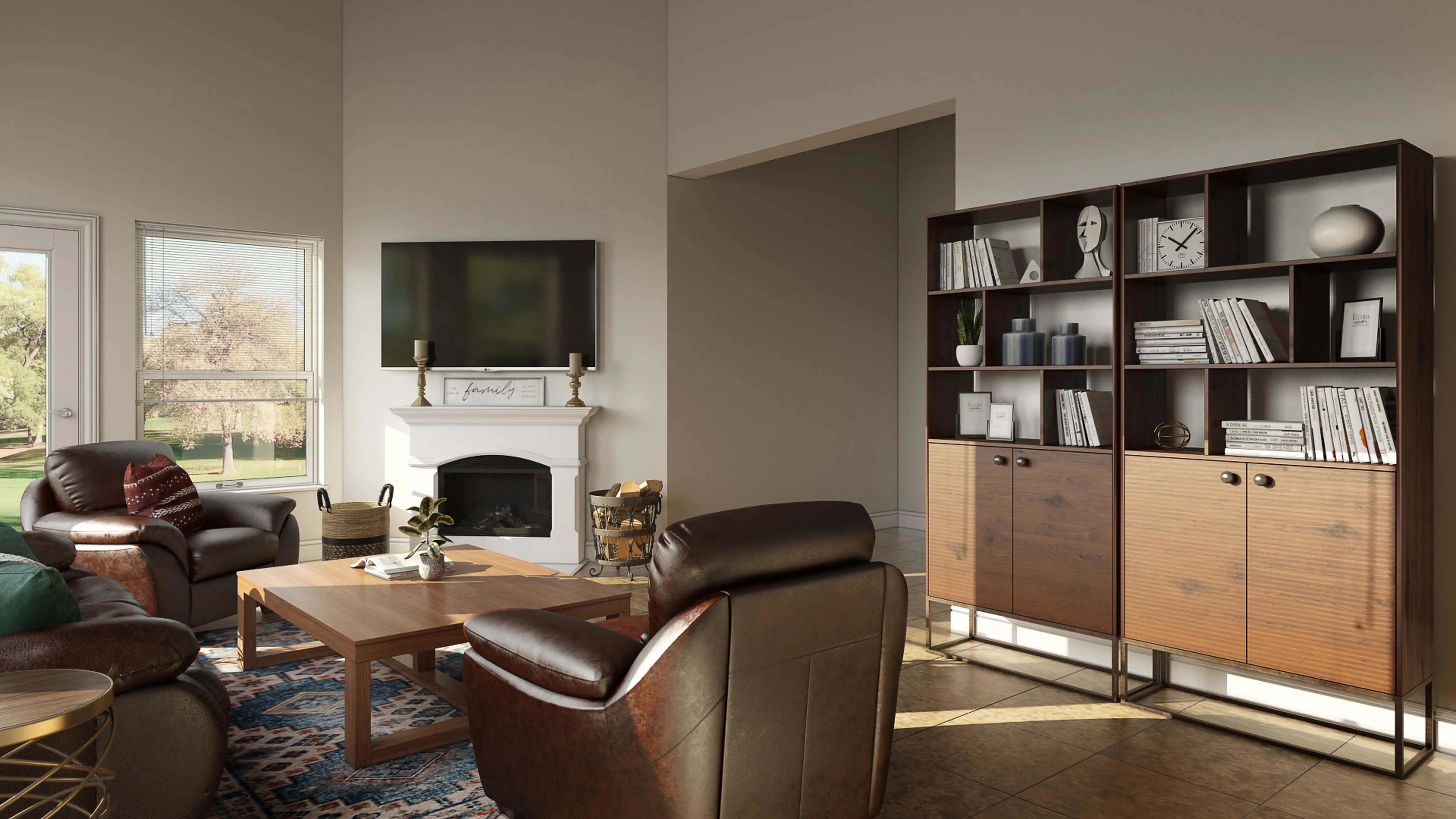 For this Living Room, Lauren selected bookcases, standing shelves, and coffee tables from Pottery Barn and Wayfair. Discover Furniture design inspiration on Havenly.