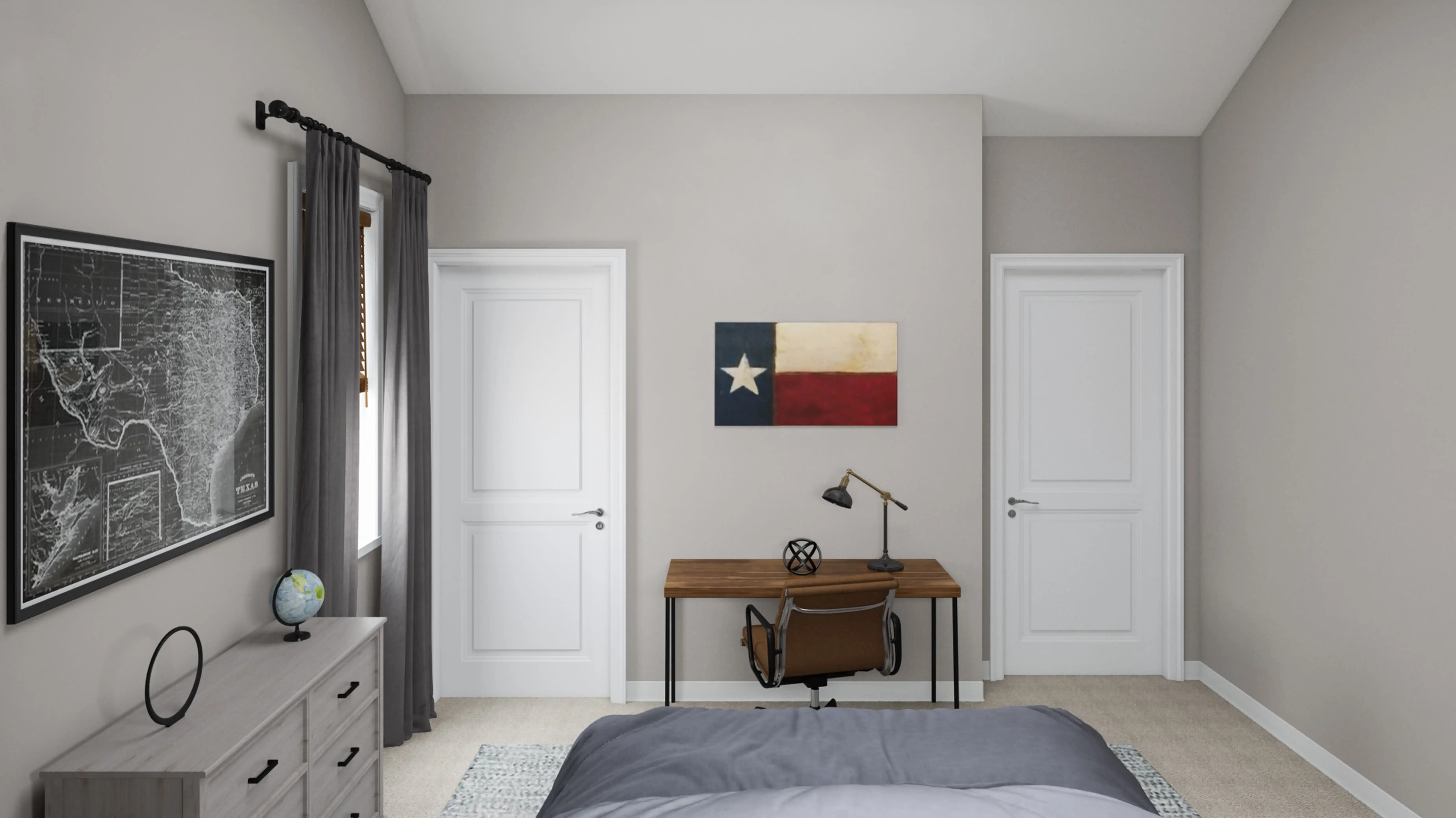 For this Bedroom, Emily selected nightstands and office chairs from Wayfair and AllModern. Discover Furniture design inspiration on Havenly.