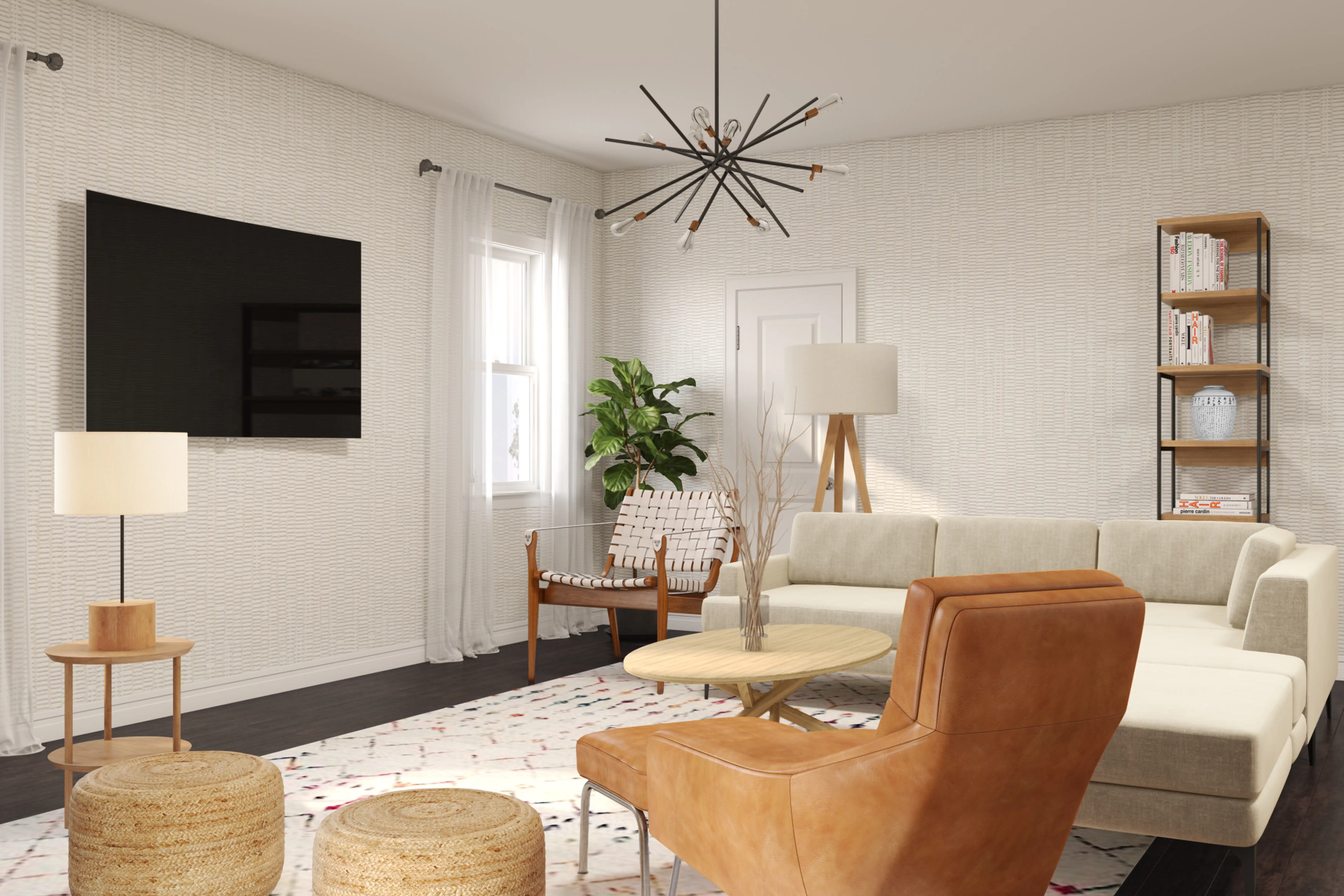 To brighten the design, Scandinavian lamps and chandeliers were added to the room. Discover Lighting design inspiration on Havenly.
