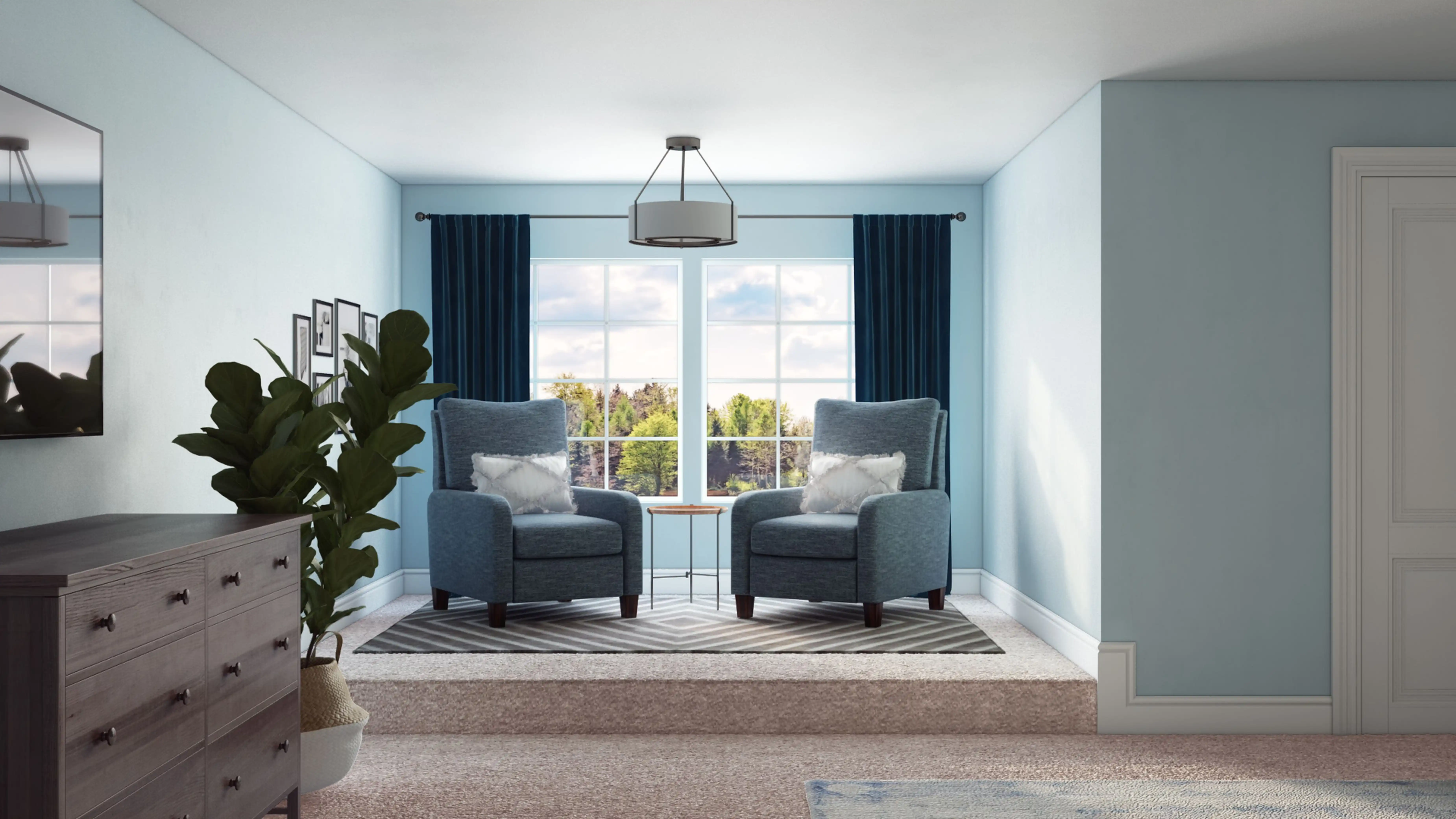 To brighten the design, modern wall light fixtures and ceiling light fixtures were added to the room. Discover Lighting design inspiration on Havenly.