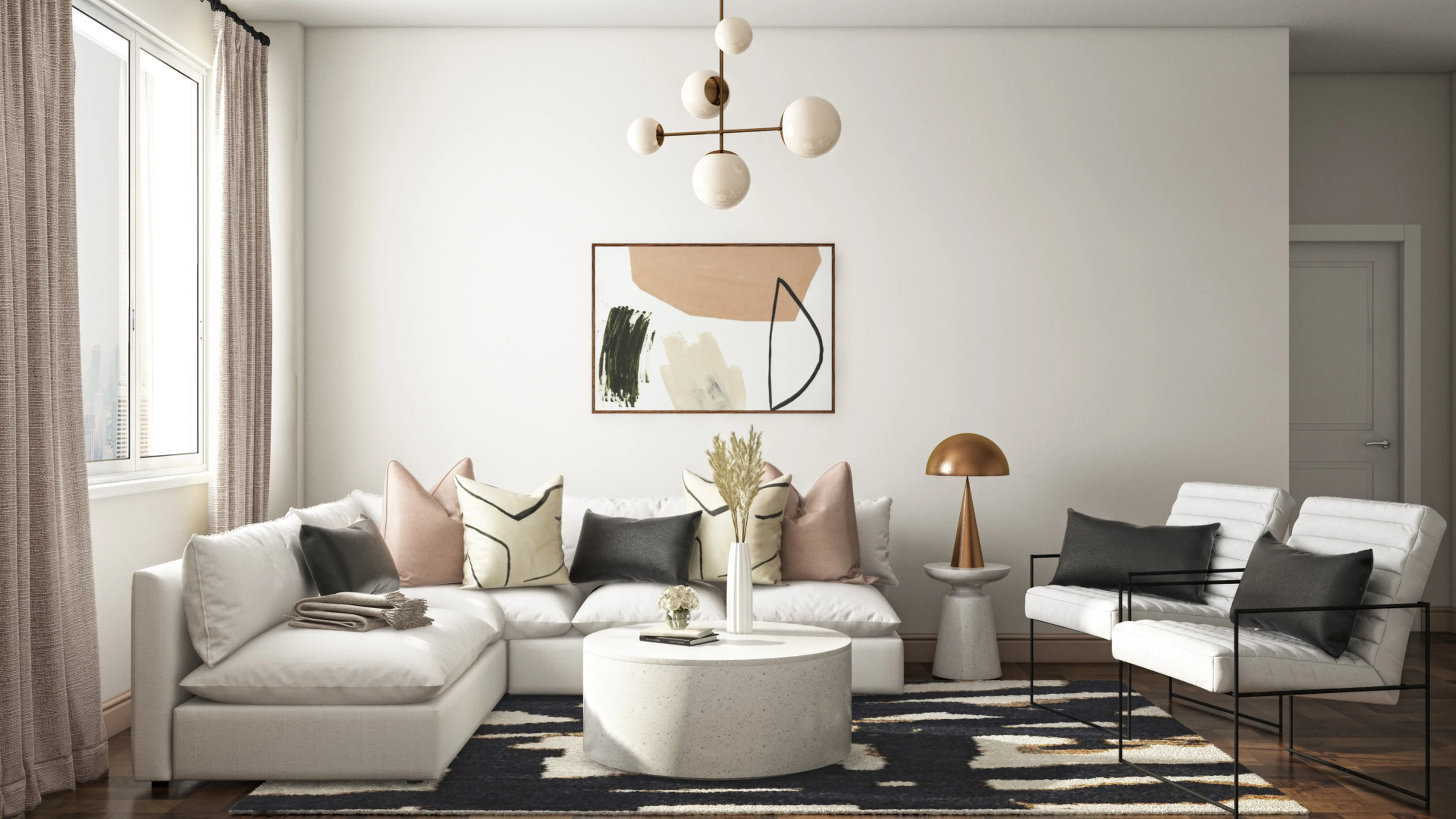 For this Living Room, Karen selected outdoor tables, arm chairs, recliners, and sleeper chairs from CB2 and Wayfair. Discover Furniture design inspiration on Havenly.