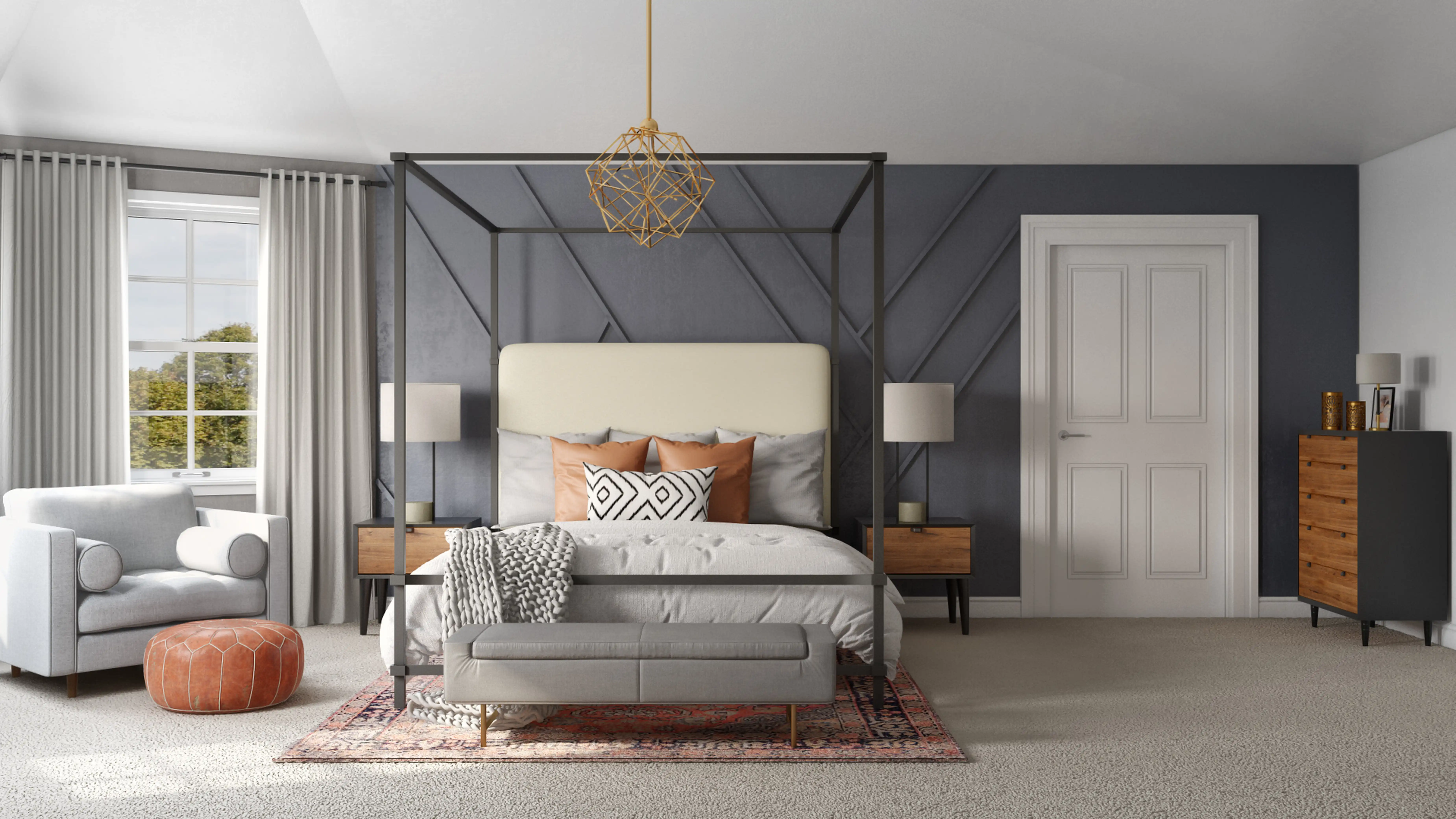 For this Bedroom, Leigh selected arm chairs, recliners, sleeper chairs, beds, and bed frames from AllModern and Kathy Kuo Home. Discover Furniture design inspiration on Havenly.