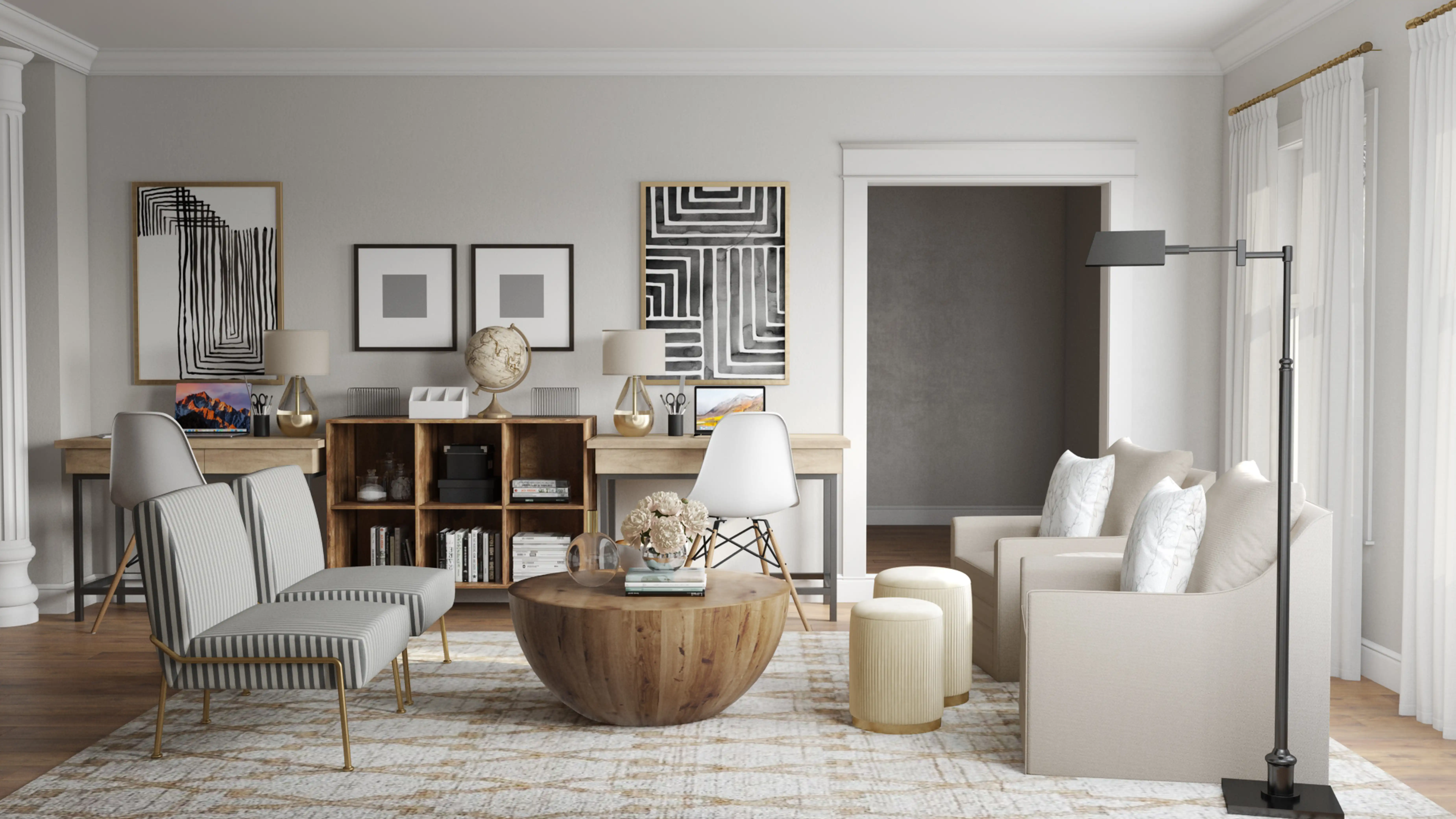 For this Living Room, Vivian selected desks and ottomans from World Market/Cost Plus and Studio Marcette. Discover Furniture design inspiration on Havenly.