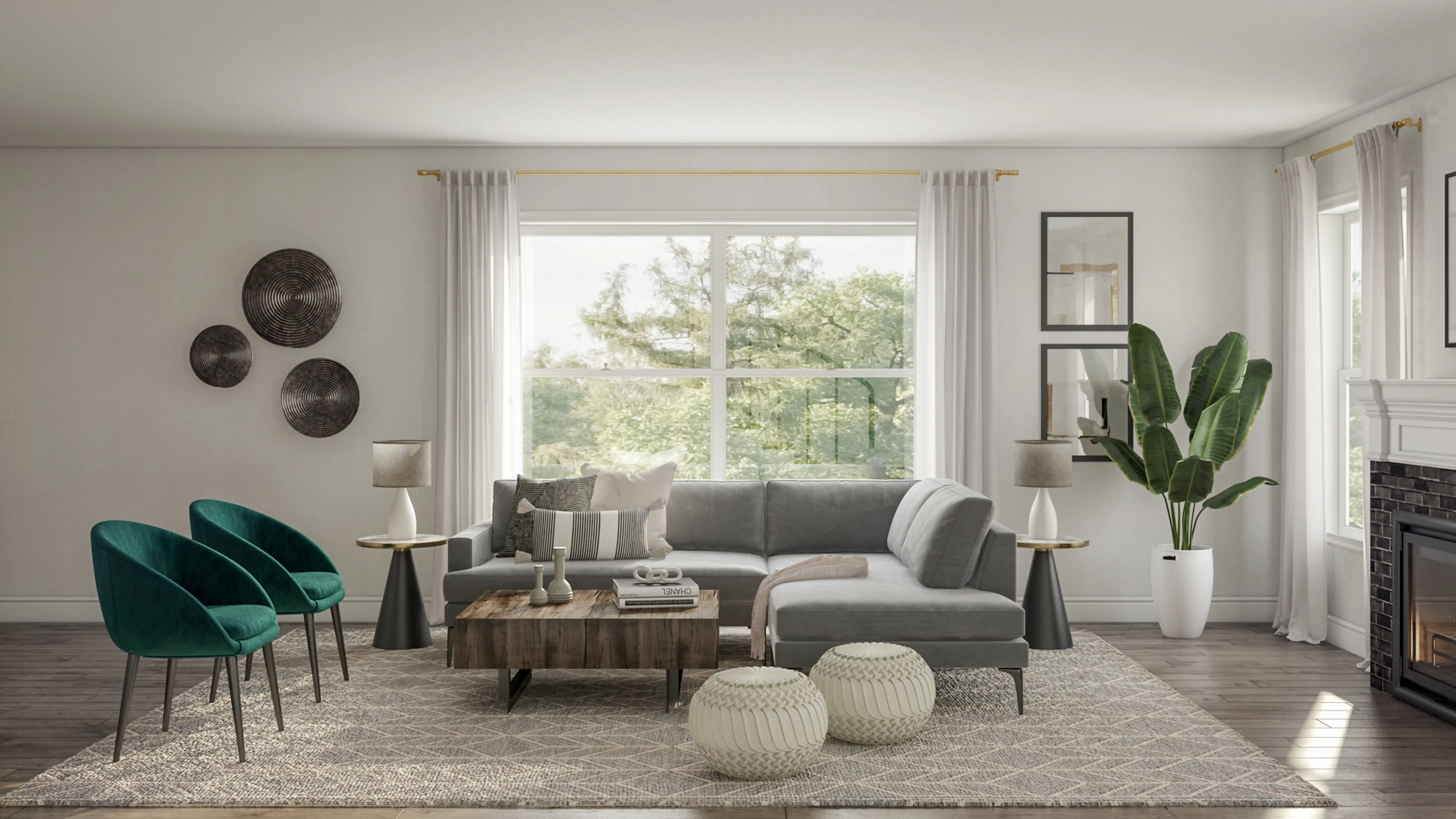 For this Living Room, Maria selected sectionals and end tables from West Elm and Studio Marcette. Discover Furniture design inspiration on Havenly.