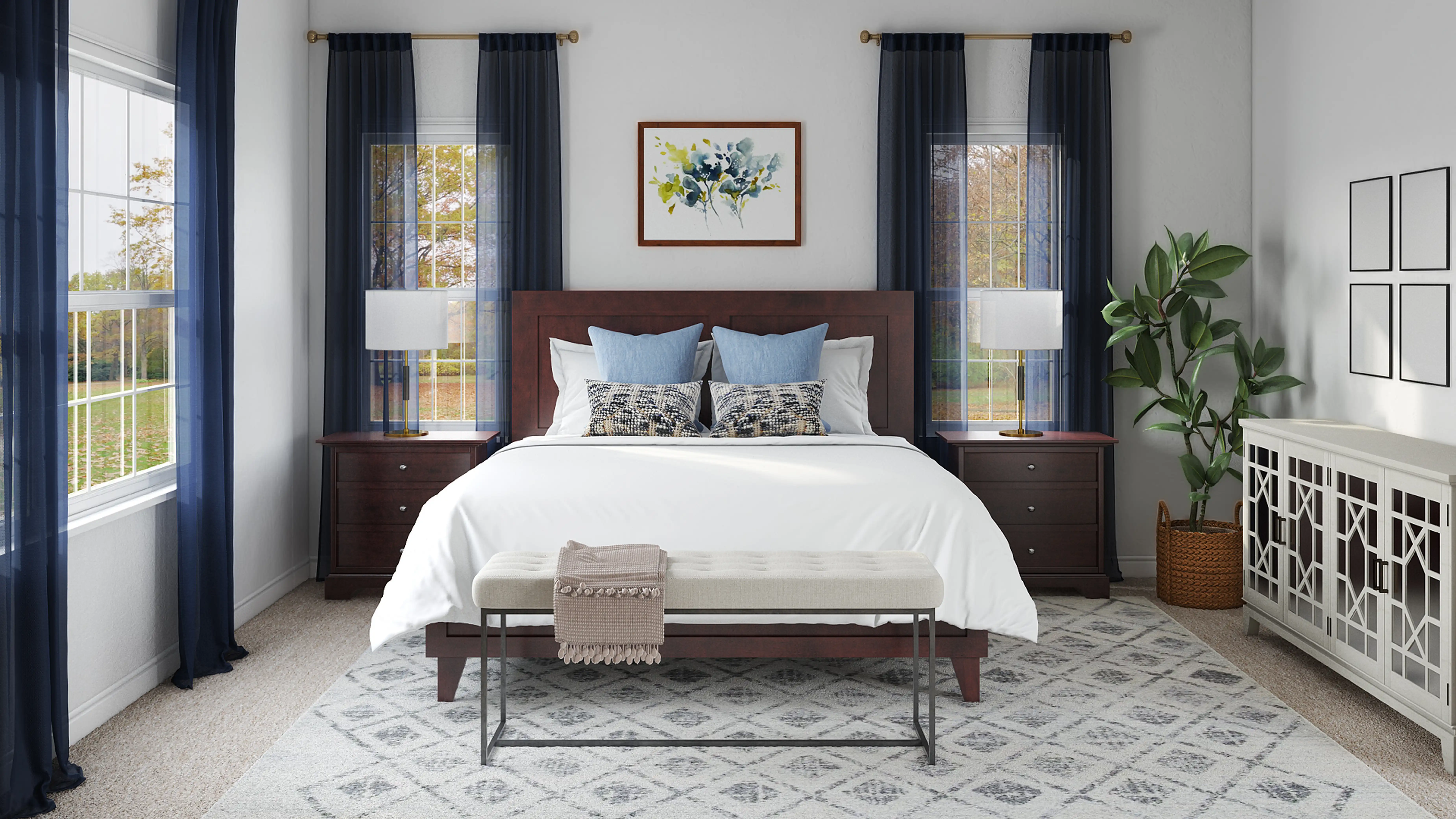 No room is complete without picture frames and throw pillows! Mixing up wood and cotton with black and navy blue helps to add the finishing touches to the room. Discover Decor & Pillow design inspiration on Havenly.