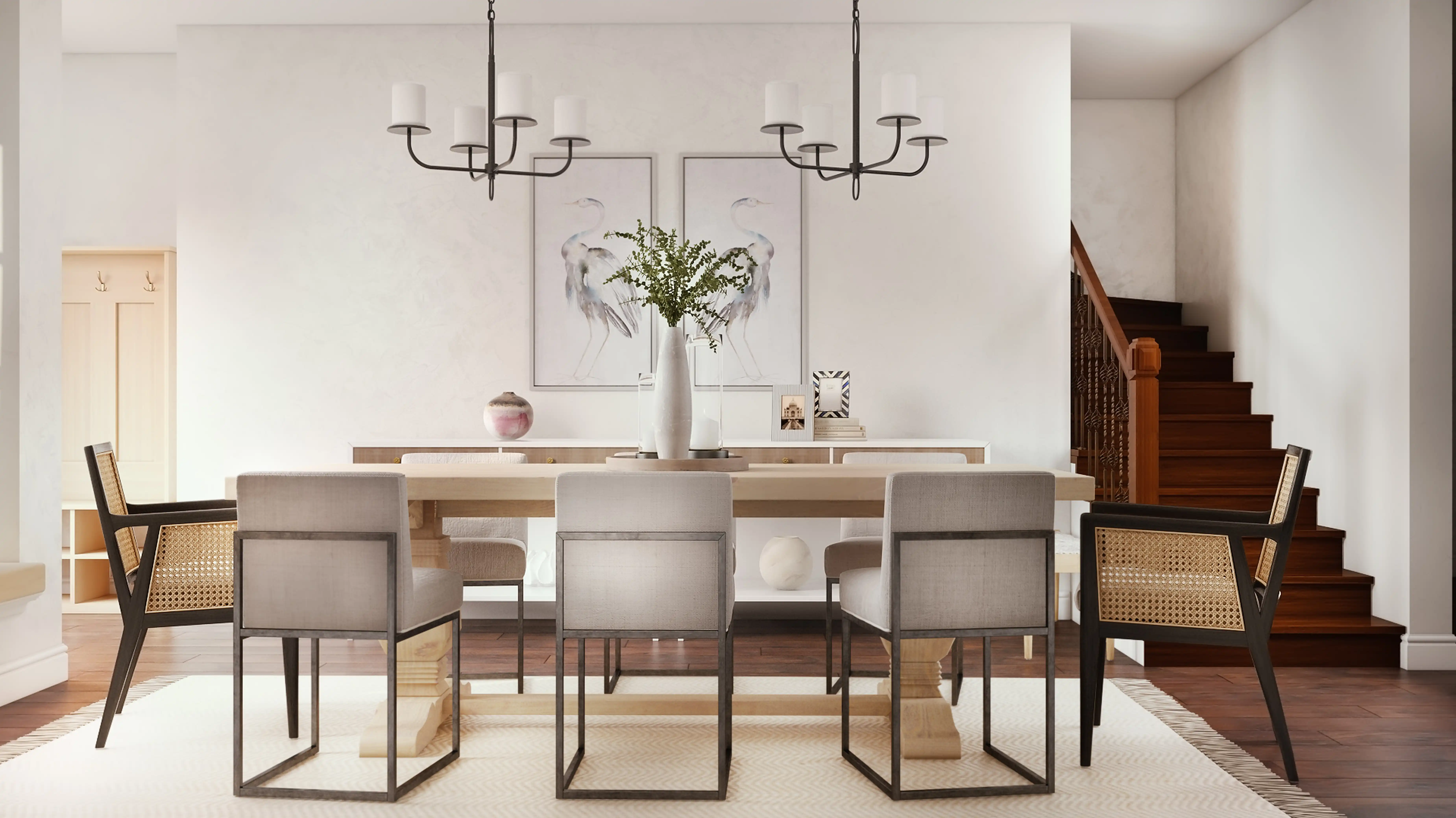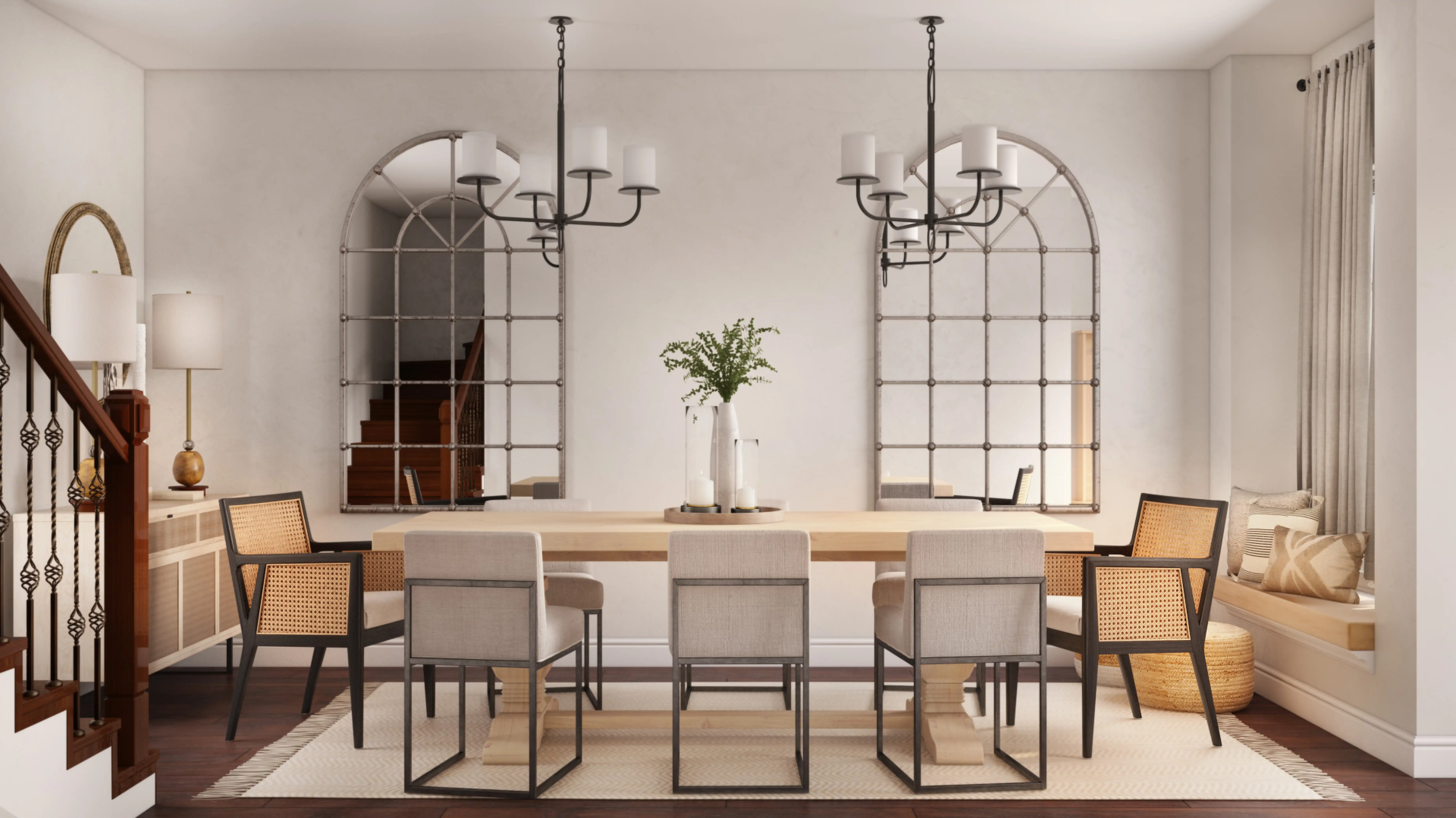 For this Dining Room, Roa selected kitchen, dining room chairs, and poufs from TOV FURNITURE and Surya. Discover Furniture design inspiration on Havenly.